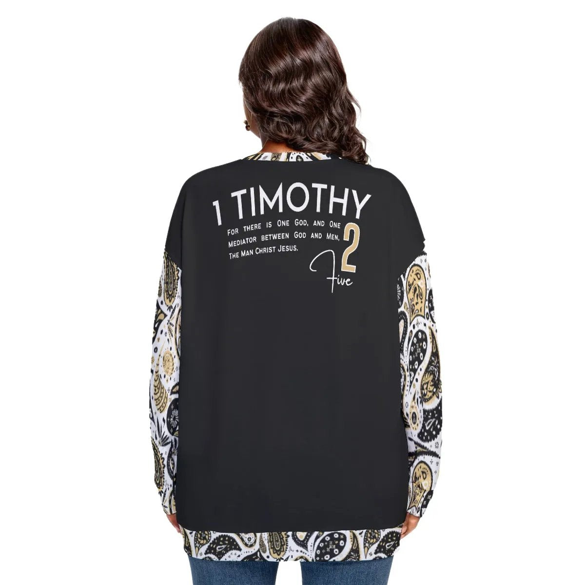 ONE GOD 1 TIMOTHY 2:5 Scripture PLUS Size Paisley Long Sleeve Shirt
