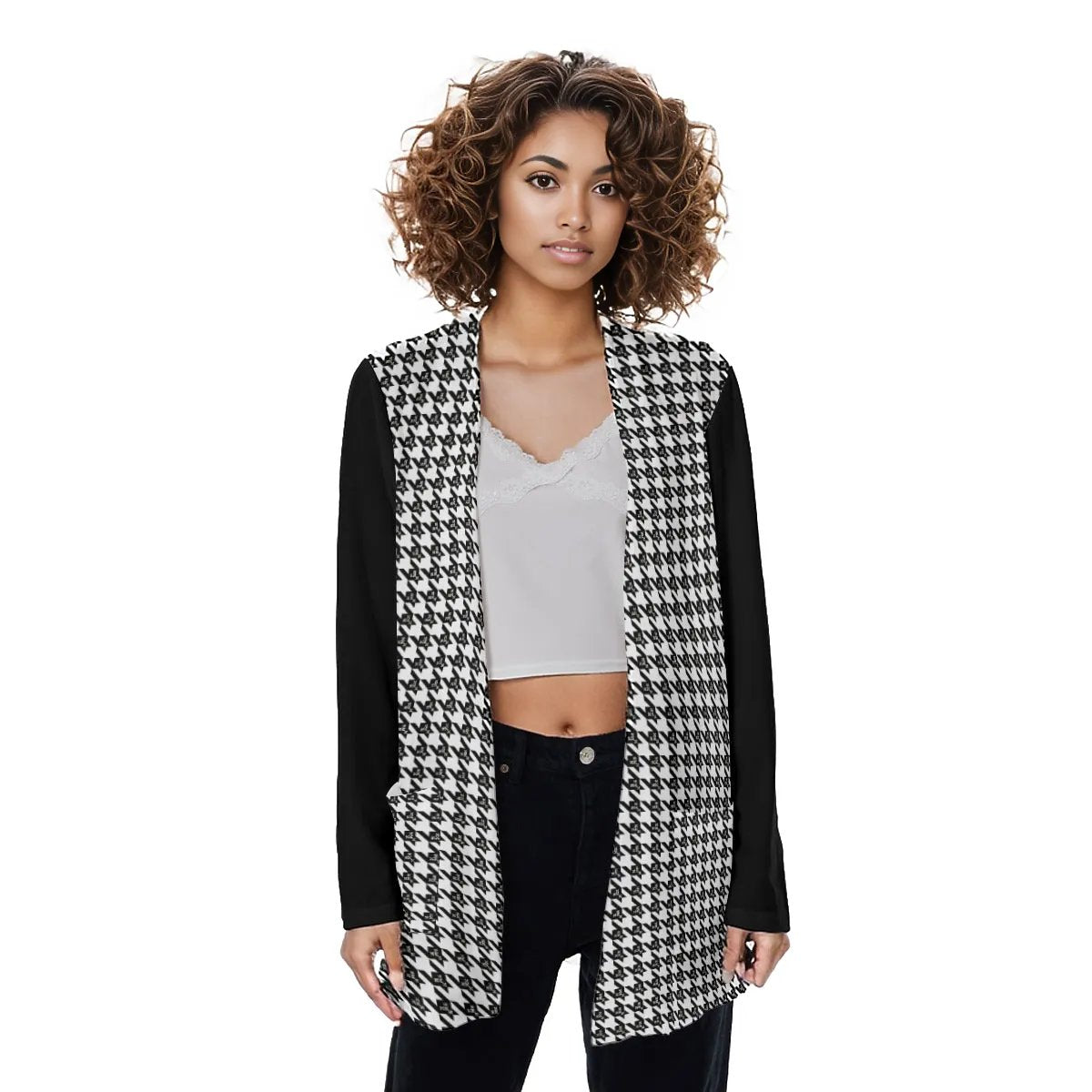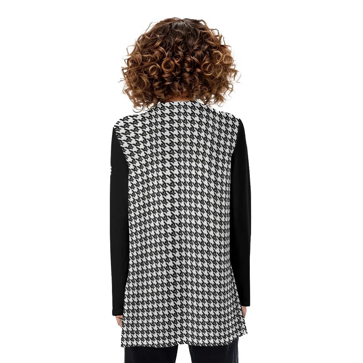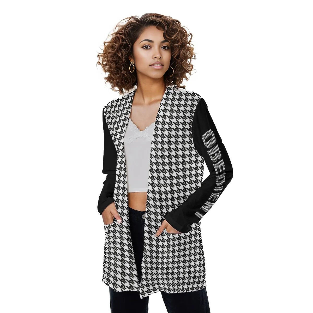 OBEDIENT Houndstooth Plaid Sleeve Pocket Cardigan