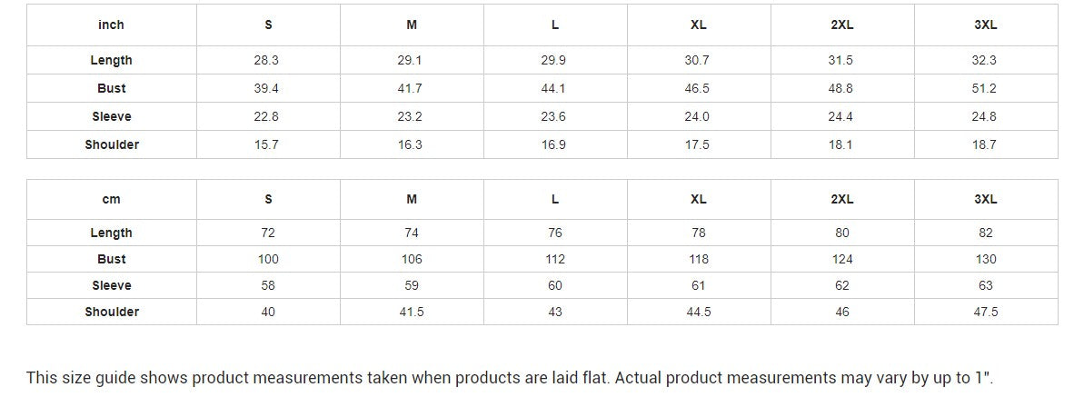 This size guide shows product measurements taken when products are laid flat. Actual product measurements may vary by up to 1".
