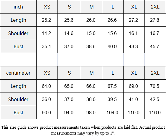 | Bust | 90.0 | 94.0 | 98.0 | 104.0 | 110.0 | 116.0 |
