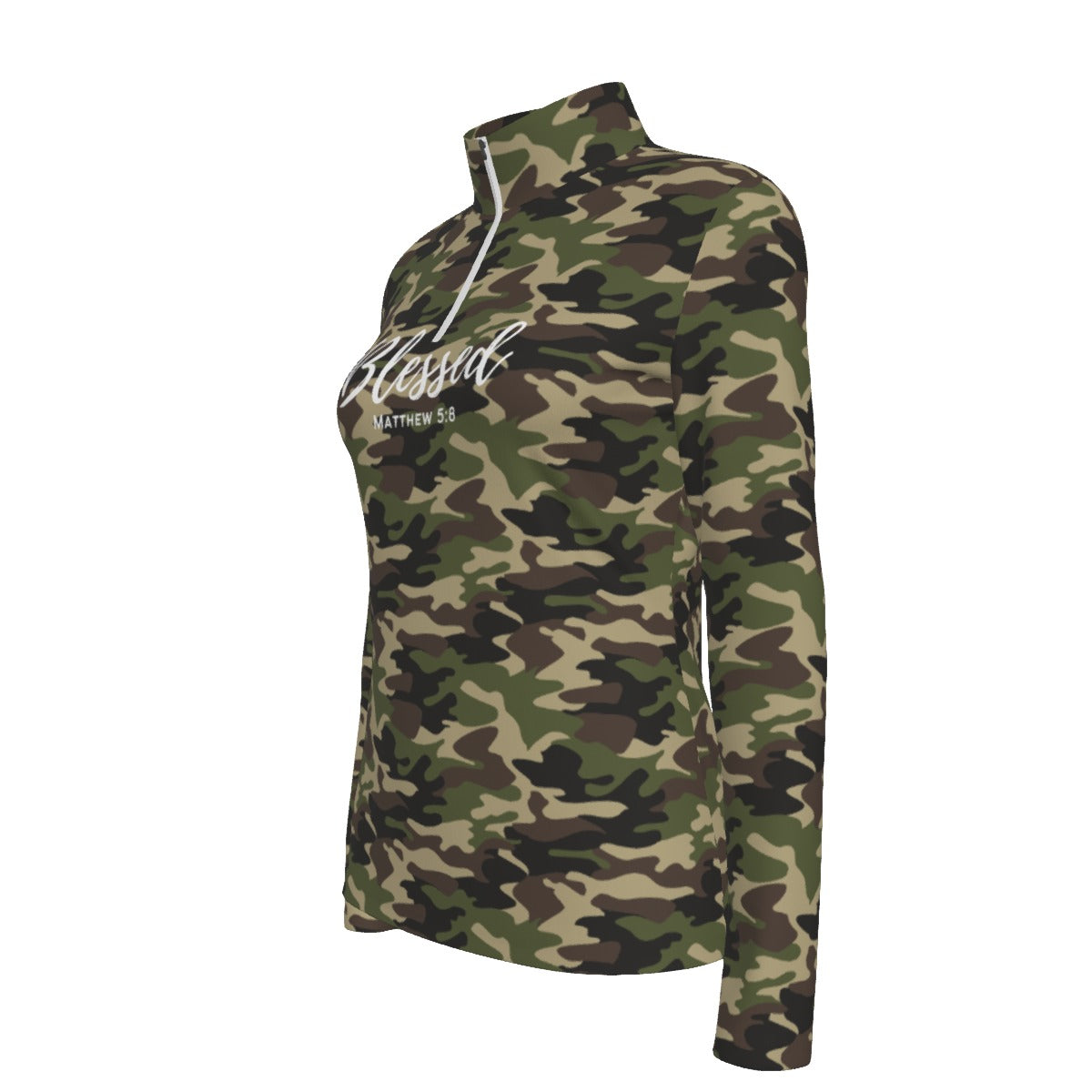 Women's BLESSED Camouflage Collar Long Sleeve Jersey Shirt