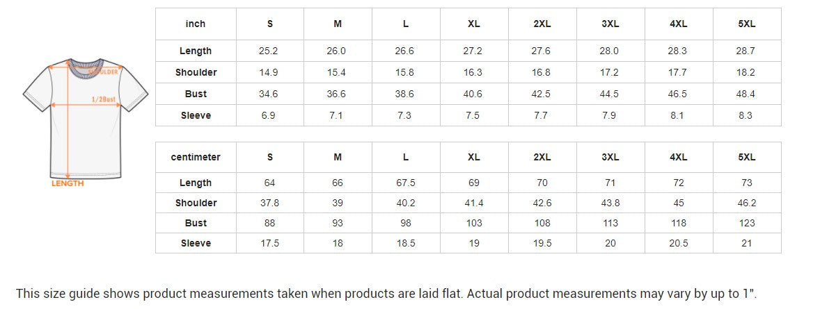 | centimeter | S | M | L | XL | 2XL | 3XL | 4XL | 5XL |