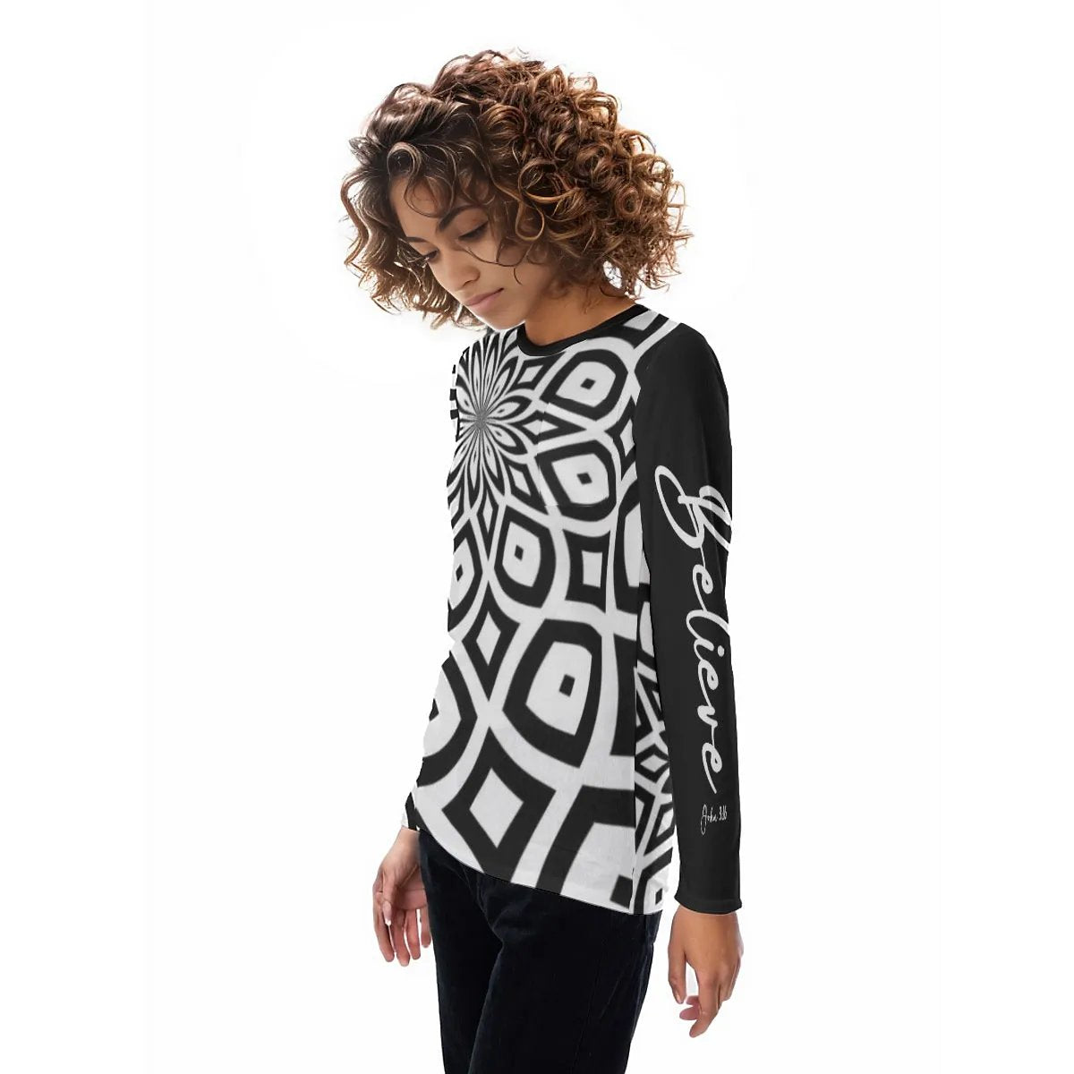 BELIEVE John 3:16 Sleeve Ethnic Pattern Long Sleeve T-shirt