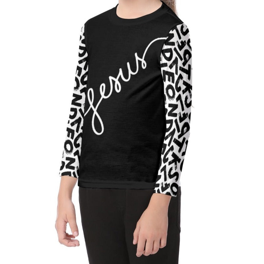JESUS Letter Pattern Black Long Sleeve T Shirt