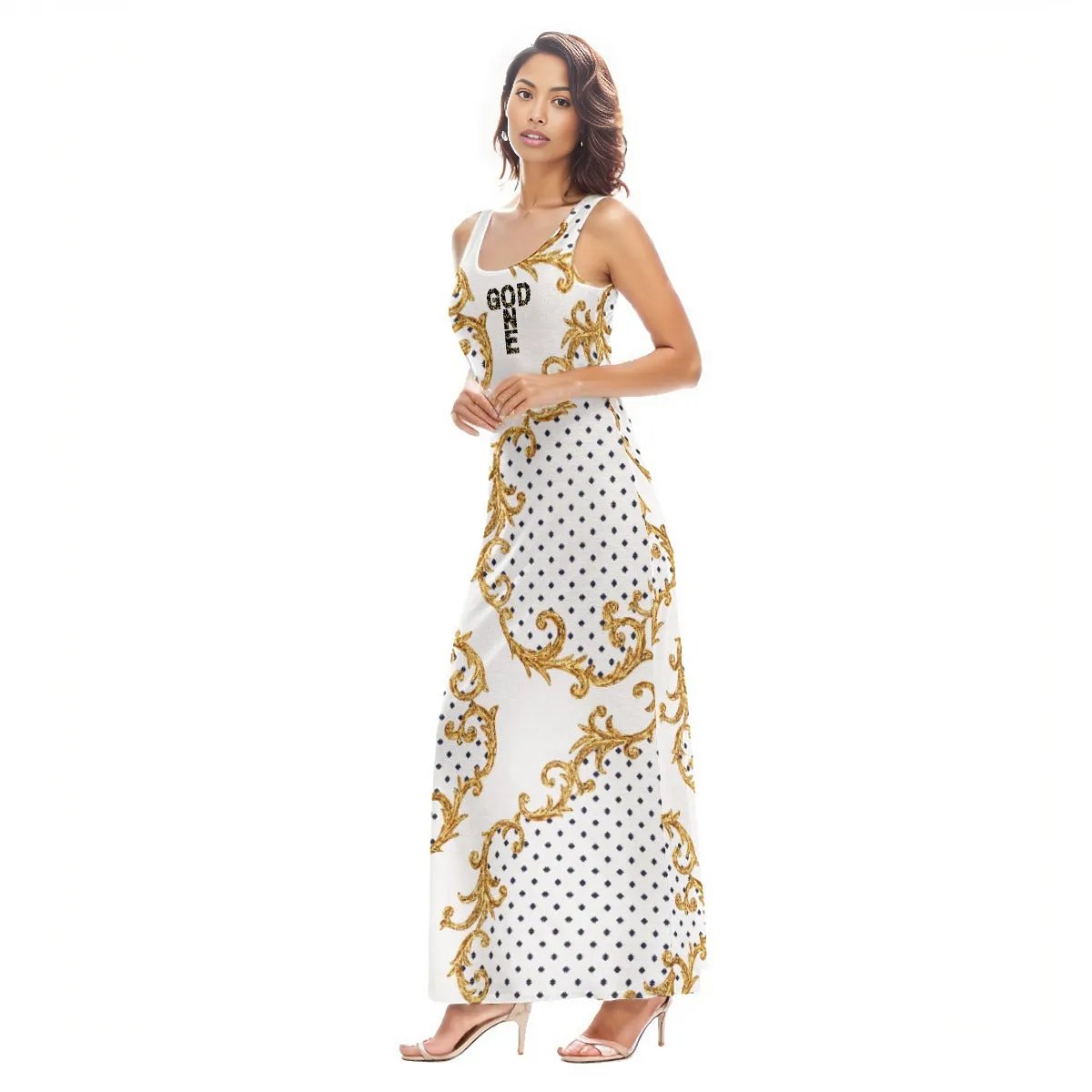ONE GOD White Gold Polka Dot Baroque Pattern Dress | Length To Ankle