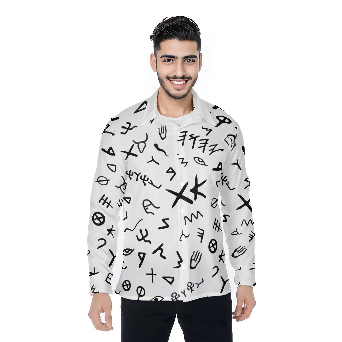 YAHUAH Ancient Paleo Phoenician Pictograph Alphabet Pattern Long Sleeve Shirt